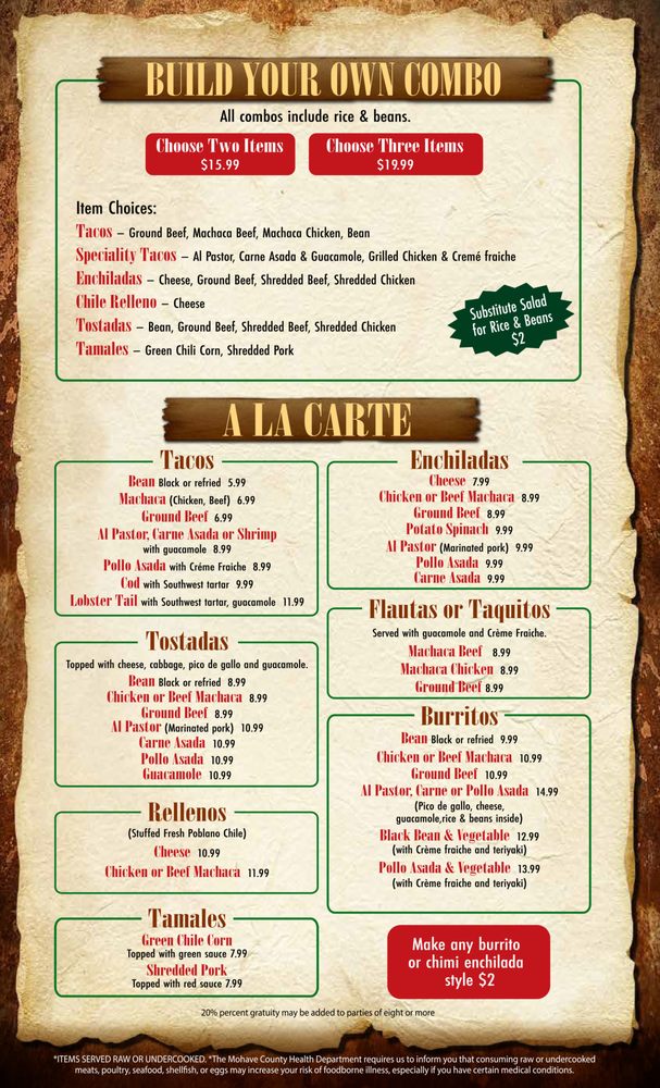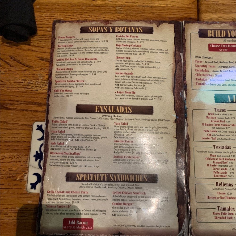 Introducing the menu at Javelina Cantina, a Mexican bar located in Lake Havasu City, AZ, offering a wide range of amenities such as outdoor seating, casual atmosphere, and vegetarian options. The restaurant also provides services like delivery, takeout, and catering. Customers have praised the top-notch service and amazing food at this establishment, with many highlighting the delicious fajitas and margaritas. The scenic view of the mountains, lake, and London Bridge from the patio adds to the dining experience. Despite some mixed reviews on the speed of service and consistency of dishes, Javelina Cantina remains a popular choice for groups and families looking for a fun and vibrant dining spot. If you enjoy Mexican cuisine with a view, this place is worth checking out.